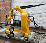 BYC-2型多功能搬運收軌車 ※適用范圍: BYC-2型多功能搬運收軌車,適用于工務部門作業(yè)中搬運鐵路路基邊存放的各型鋼軌或混凝土枕及轍叉等線上料物資。該設備為可拉、可運的手搖式小車,不需任何動力源。走行輪采用尼龍材料,輔助鏈及推行把絕緣性能好,不影響軌道電路。